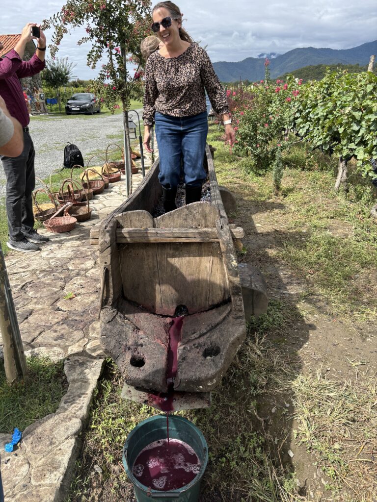 For the wine enthusiast, a trip to Kakheti, especially during the month of Rtveli (grape harvest) is a special treat. Kakheti is home to 80+ indigenous grape varieties and is mostly known for its dry wine varieties, both the popular red saparavi and the amber rkatsiteli. There are MANY small family maranis (wine cellars) scattered throughout the Kakheti region as well as larger wineries. Many continue to use the traditional Georgian wine making methods, but some have started using more modern European methods as well. Regardless, you have the opportunity to learn much about Georgian wine culture as you interact with winemakers. If your trip falls within Rtveli season, you’ll get to have hands-on experience in picking and stomping grapes, followed by a traditional Georgian supra (feast) with lots of traditional singing and toasting. On a wine tour you will get to visit and tour at least two wineries, observing traditional and modern winemaking traditions, and be led through tasting of select Kakhetian wines. Throughout the day as you drive through the Alazani River Valley you’ll have excellent views of the Greater Caucasus Mountains, first from a vista overlooking the charming town of Sighnaghi, and closing the day from the Gombori Pass as you return to Tbilisi.
