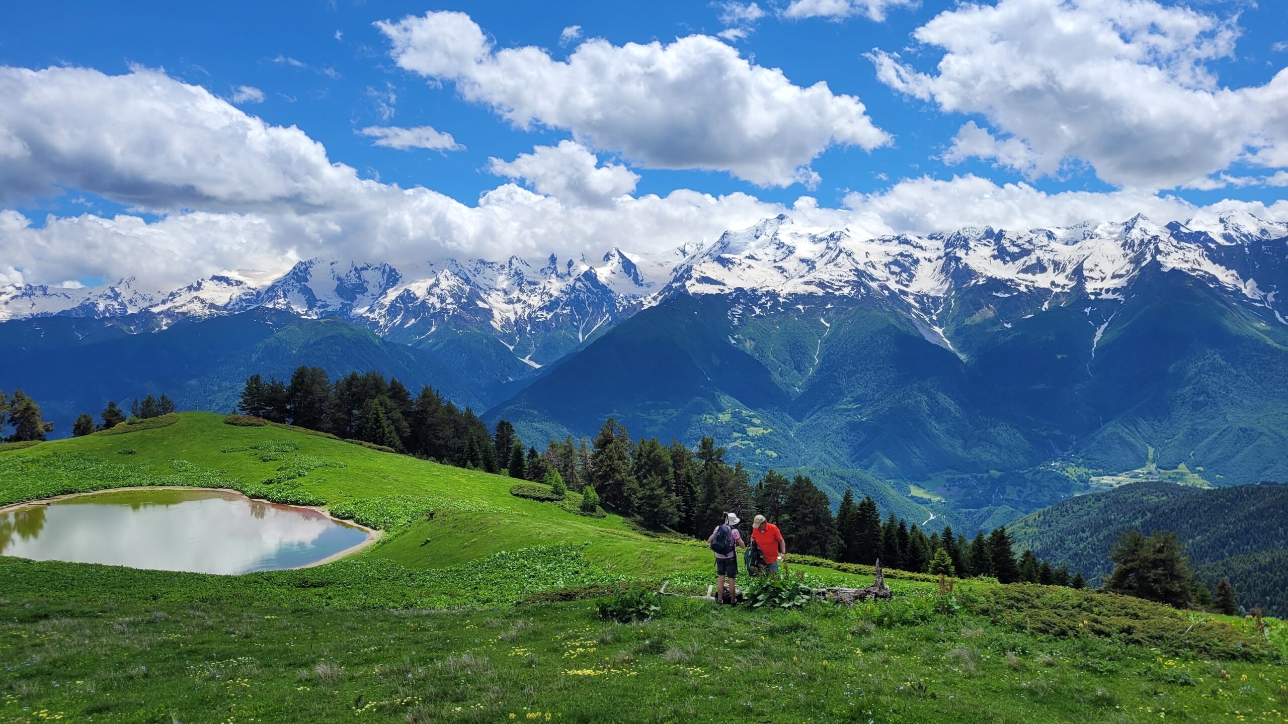 After breakfast you’ll start towards the next village, Zhabeshi, from where you’ll start the upward slopes of Tetnuldi Mountain (4858m). You’ll pass the popular winter ski slopes, stopping at a high point for panoramic views of surrounding glaciers and some of the highest mountains of the Greater Caucasus range. You’ll continue on, descending into the forests of birch tress and rhododendron bushes. The trail continues along small mountain rivers and through colorful meadows filled with wildflowers to Adishi, a small village hidden well between several mountains. Adishi has several stone towers & houses built several centuries ago.