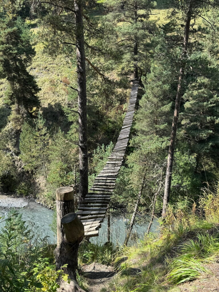 Other points of interest include driving from Omalo to Diklo to visit the original fortress ruins, stopping in Shenako at St. George’s church and the ruins of Ageurta village on the way to/from Diklo. A drive into the Pirikiti Valley features beautiful views of the Pirikitis Alazani River with visits to the towers of Dartlo village, continuing on to the the villages of Parsma and Girevi. In Pirikitii you will find the greatest number of mostly intact towers. Gometsari is more forested than the Pirikiti valley, the road following the Tushetis Alazani River, featuring beautiful views and stops at Bochorna village (hailed as Europe’s highest elevation village), Dochu village (requires hiking down to visit), the swinging bridge, St. George’s Church in Iliurta, and the Verkhovani waterfall.