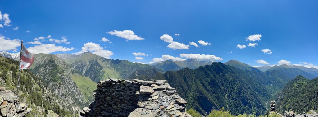 Once in Tusheti, there are many places to visit of great historical and cultural interest. The number of days you have to spend and whether you want to do any other outdoor activities will dictate how many places you visit. In the central Omalo area, a stop at the Visitor Center is worthwhile to gain an understanding of the history, culture, flora and fauna of Tusheti. A short walk from the center there is also a nice area for a picnic and an overlook towards the village of Tsokalta. In Upper Omalo the short walk to the Keselo Fortress which was preserved by a foundation started by a Dutch family living in Georgia. A short drive from Upper Omalo you can visit the Que Panorama vista point as well as Ghele, featuring 360 degree views towards Omalo, Bochorna, and Dartlo.