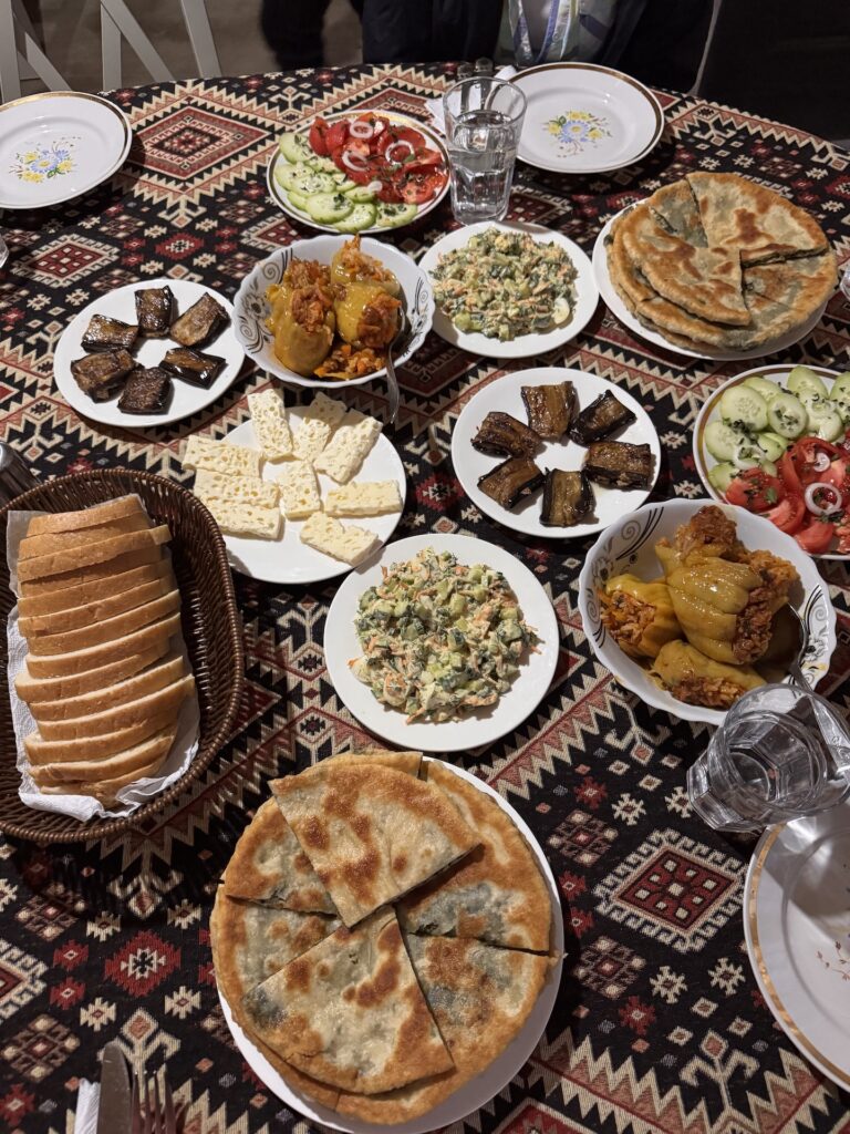While Tushetians prepare and eat many of the same foods as you will find throughout Georgia, there are several dishes unique to Tusheti or have a local flare. For example, kotori is the Tushetian version of khachapuri (Georgian cheese bread) and khinkali are made more simply – without greens, using either beef or lamb, with the addition of caraway seed harvested in the mountains. While many people are not a fan, we recommend trying at least once the unique Tushetian guda cheese. It is a salty cheese made in the highlands, cured in the skin of a lamb, giving it a potent smell, but also a delicious taste. A cup of Kondoris chai, made from wild thyme that is gathered in the mountains in the summer, is the perfect way to end your day in Tusheti. You certainly won’t go hungry at any Georgian table, but especially as a guest in the home of Tushetians 🙂
